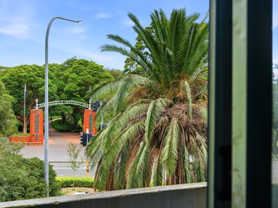 • Spacious lounge room opening onto a balcony overlooking Fairfield Park